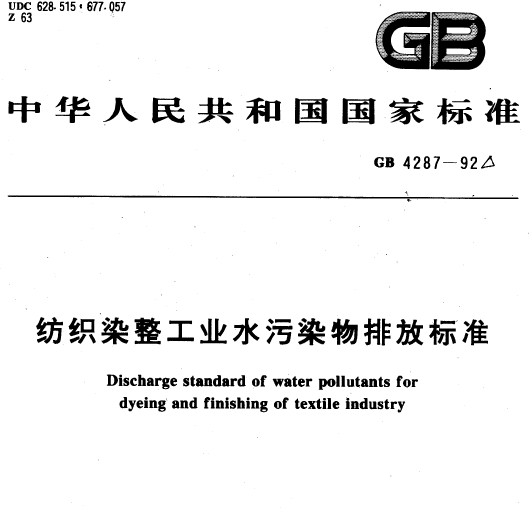 紡織染整工業水污染物排放標準(GB 4287-92)