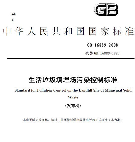 生活垃圾填埋場污染控制標準GB 16889-2008
