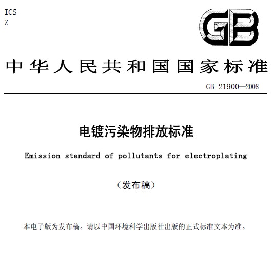 電鍍污染物排放標(biāo)準(zhǔn)(GB 21900—2008)