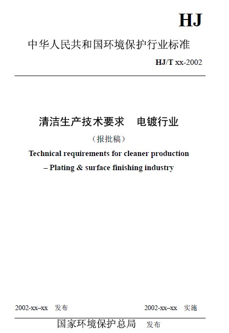 《清潔生產技術要求 電鍍行業》(報批稿)
