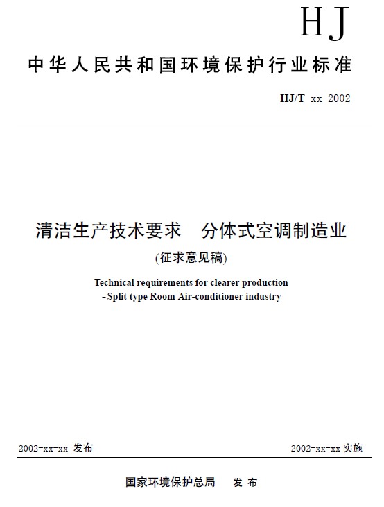 《清潔生產(chǎn)技術(shù)要求 分體式空調(diào)制造業(yè)》(征求意見稿)