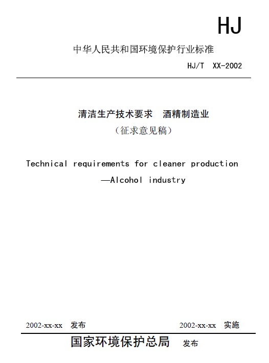 《清潔生產技術要求 酒精制造業》(征求意見稿)