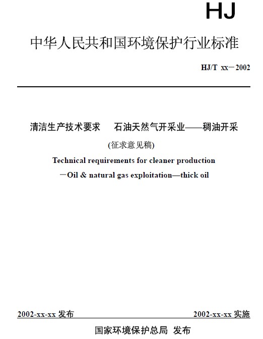 《清潔生產(chǎn)技術(shù)要求 石油天然氣開采業(yè)-稠油開采》(征求意見稿)