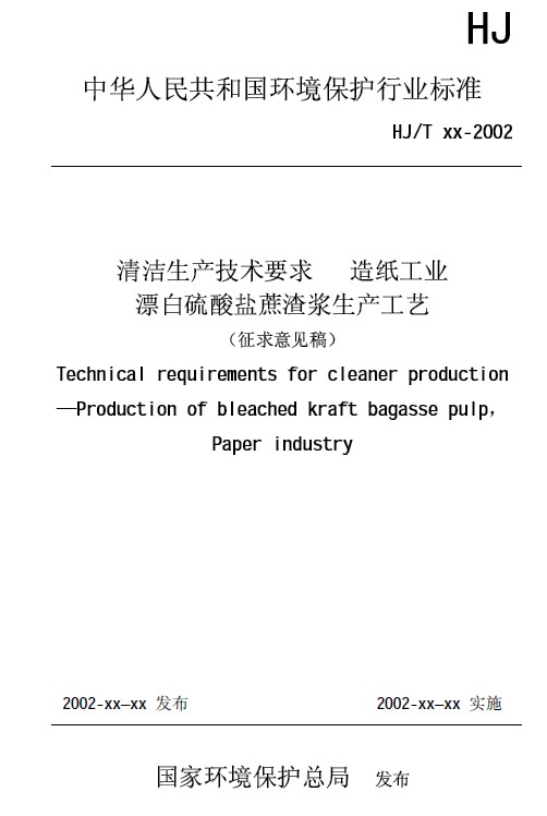 下載地址:《清潔生產(chǎn)技術(shù)要求 造紙工業(yè)漂白硫酸鹽蔗渣漿生產(chǎn)工藝》(征求意見稿)0.pdf