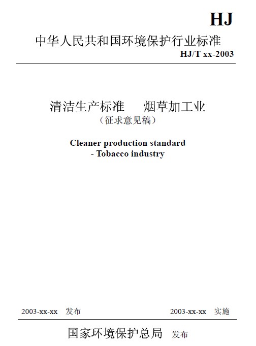 《清潔生產(chǎn)標(biāo)準(zhǔn) 煙草加工業(yè)》(征求意見稿)