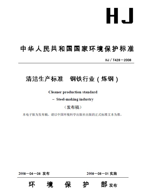 清潔生產(chǎn)標(biāo)準(zhǔn) 鋼鐵行業(yè)(煉鋼)