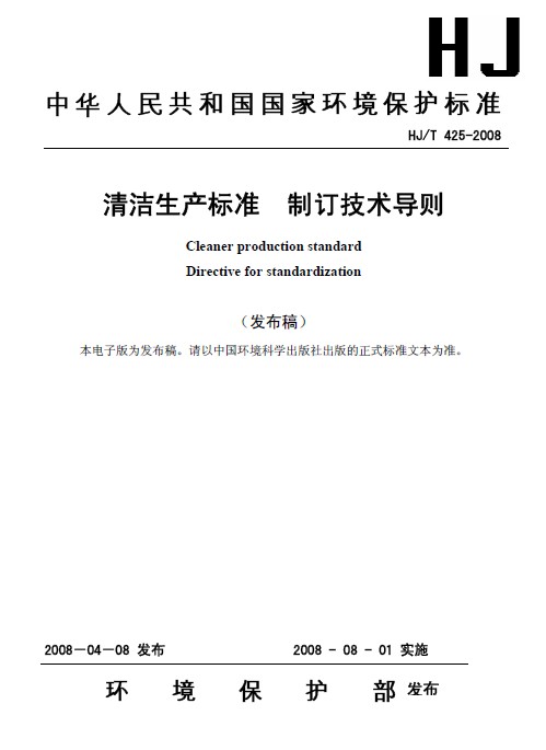 清潔生產(chǎn)標(biāo)準(zhǔn) 制訂技術(shù)導(dǎo)則