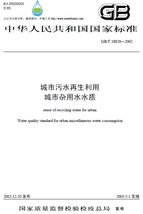 城市污水再生利用 城市雜用水水質GB-T18920-2002