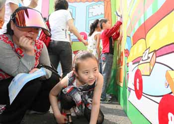 富有濟(jì)南特色的環(huán)保游戲                 家長(zhǎng)和孩子一起觀看環(huán)?ㄍㄆ